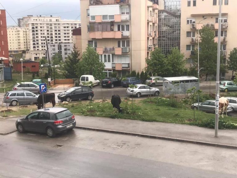 Lopët shihen pikërisht tek ‘Bregu i Diellit’ në mesin e shumë veturave. Duhet përkujtuar që kjo nuk është hera e parë që lopët ecin lirshëm në mes të asfaltit në Prishtinë.