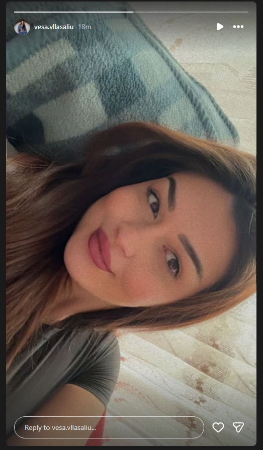Në selfien e ndarë shihet se Vesa duket më e plotë, pasi shihet qartë se ka shtuar kilogramë në pritje të ëmbël.
