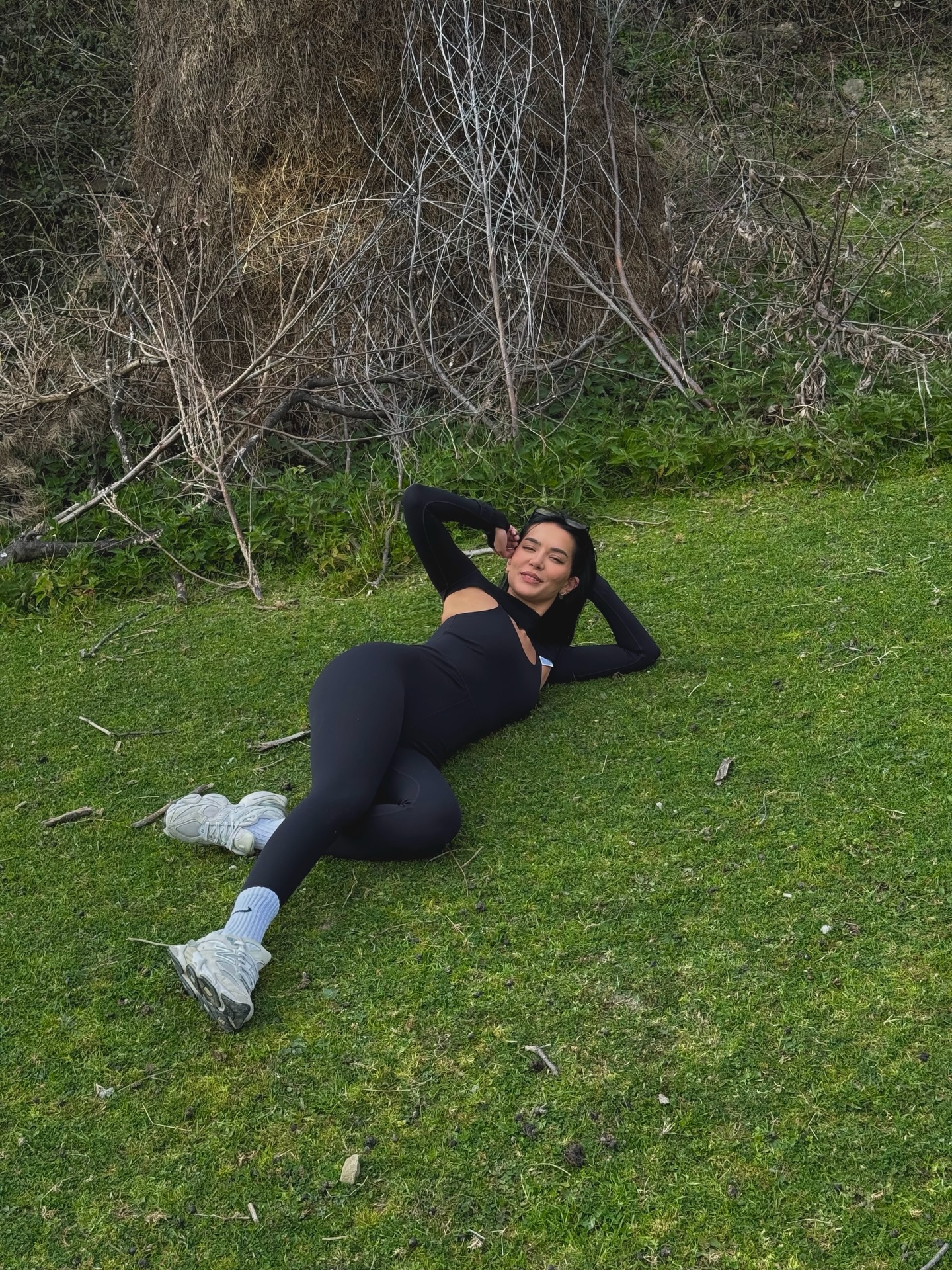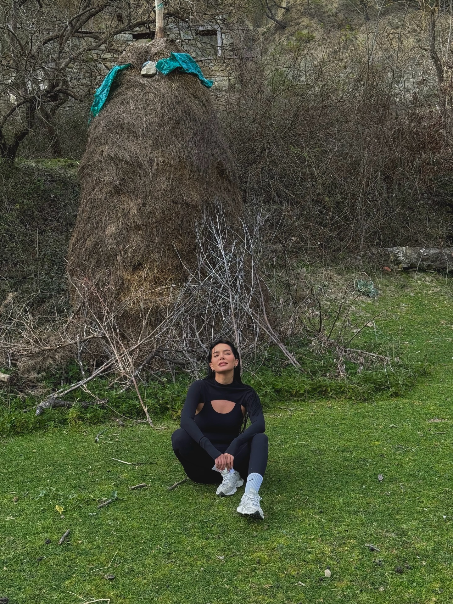 Ajo duket mjaft e lumtur dhe e relaksuar mes gjelbërimit, duke shijuar momentet e thjeshta që i ofron ky ambient.