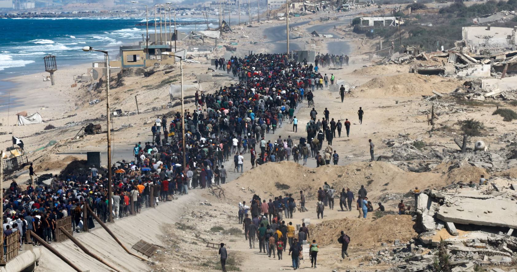 Një kolonë e madhe njerëzish u nis në këmbë në veri, përgjatë vijës bregdetare të Gazës, zona më e madhe urbane, e cila ishte sulmuar vetëm disa ditë më parë, në një nga ofensivat më të mëdha të Izraelit gjatë luftës.