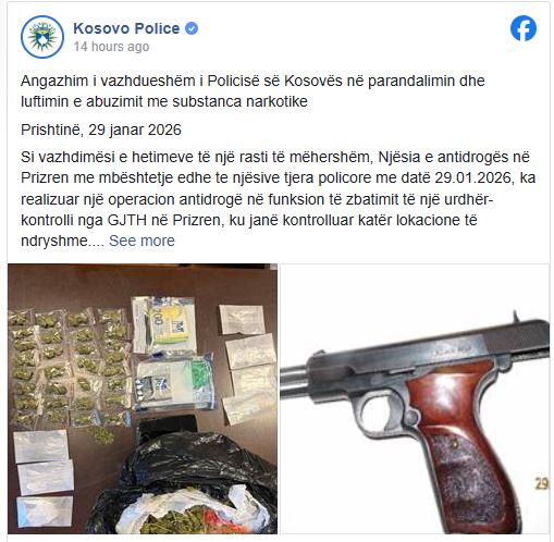 “Hetimet lidhur me rastin janë duke vazhduar nga njësia e antidrogës në Prizren”, thuhet në njoftim.