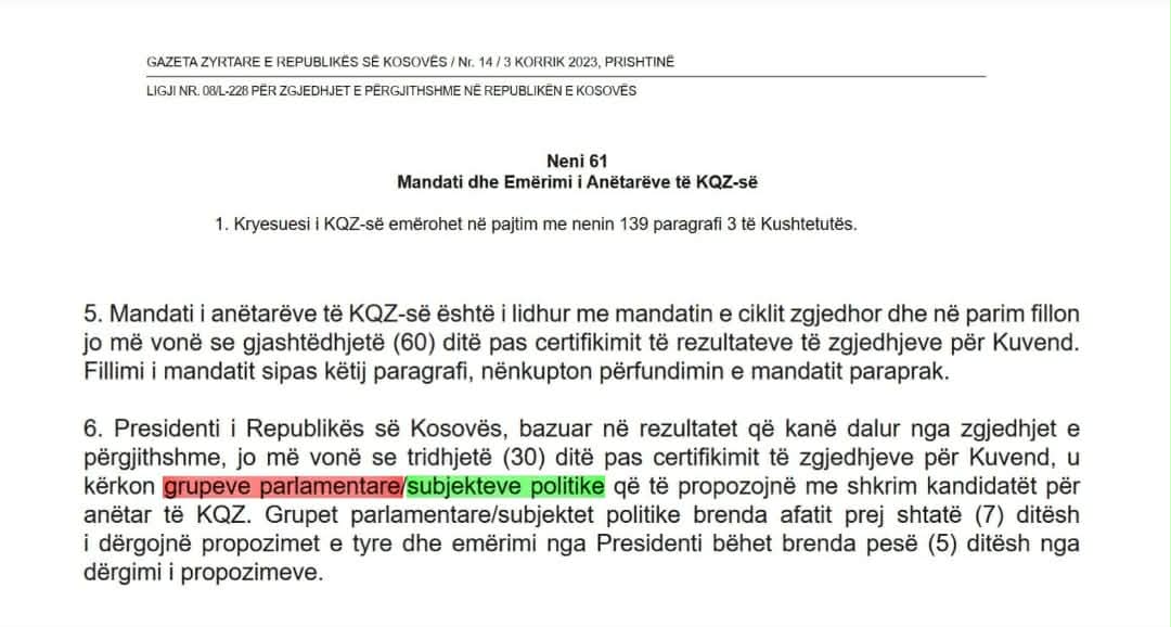 Siç duket, Osmani ka shfrytëzuar një detaj nga Ligji për Zgjedhjet e Përgjithshme që asaj i jep të drejtë të kërkojë propozimet edhe nga subjektet politike.