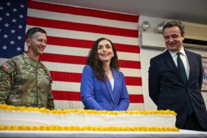 Është një moment i pazakontë i viteve të fundit. Një lider i Partisë Demokratike të Kosovës brenda kullës së Jasharëve.