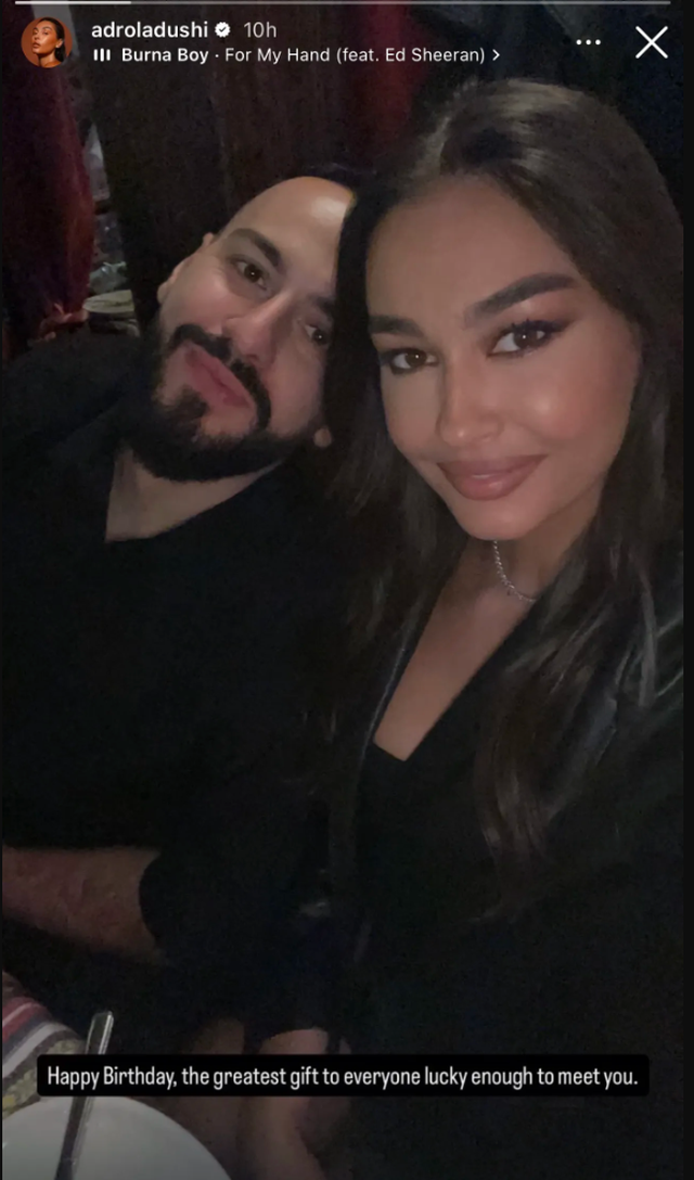 Përmes një postimi në rrjetet sociale, ku shfaqet në një foto krah tij, Adrola ka shkruar: “Gëzuar ditëlindjen, dhurata më e madhe për këdo që është me fat të të takojë”.