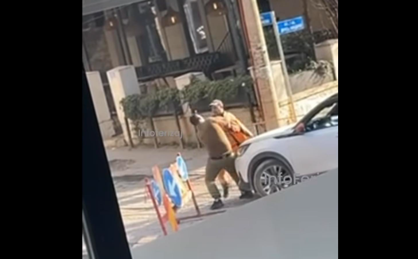 Derisa një punëtor po përkujdesej për mbarëvajtjen e punimeve në një rrugë, një person tenton të kalojë përmes asaj rruge, me veturën e tij.