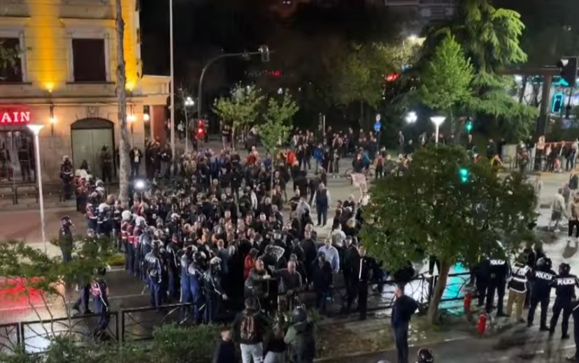 Mes tyre ka patur edhe përplasje ndërsa policia ka hedhur ujë me autobotin i cili ndodhet i pozicionuar pas forcave të policisë. Pas disa tentativash, protestuesit nuk kanë mundur të thyejnë kordonin ndërsa policia vijon të rezistojë duke mos i lejuar ata të vijojnë tensionet në kryeqytet.