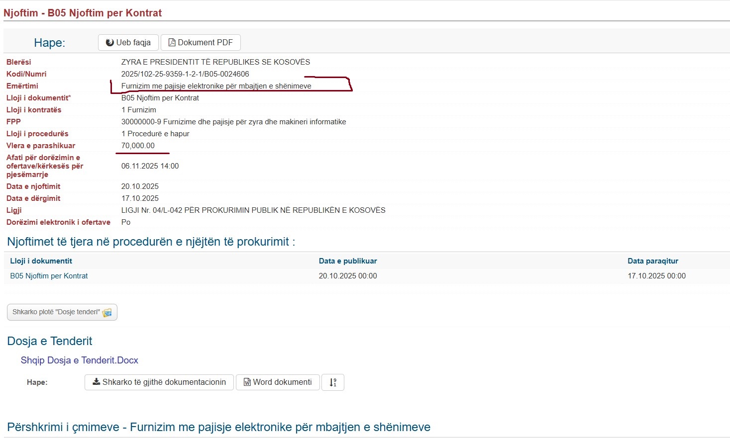 Presidenca e Kosovës ka paraparë të shpenzojë rreth 70 mijë euro për të blerë 75 pajisje elektronike për mbajtjen e shënimeve, një tender që me titullin e vet modest fsheh një luks të qartë teknologjik, shkruan Demokracia.com.