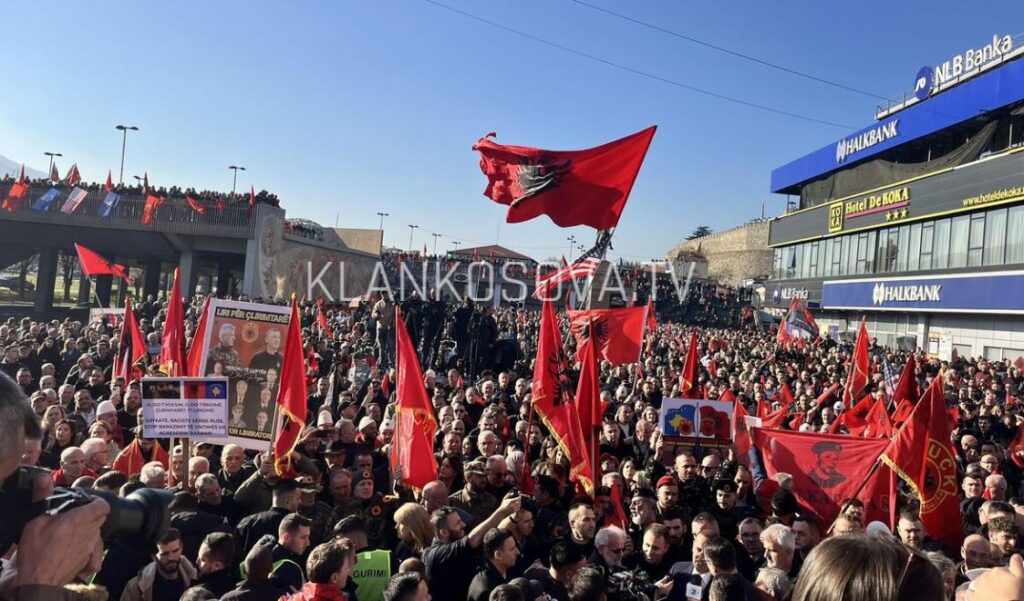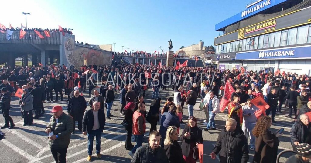 Protesta mblodhi qindra qytetarë shqiptarë, të cilët u tubuan në Sheshin “Skënderbeu” në Shkup, duke mbajtur flamuj kombëtarë, simbole shqiptare dhe pankarta me mesazhe të ndryshme kundër Gjykatës Speciale, raporton Klankosova.tv.