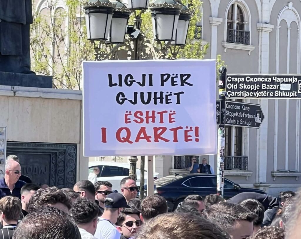Me thirrje për respektim të Ligjit për përdorimin e gjuhëve, respektim të Kushtetutës dhe drejtësi, në Shkup ka nisur protesta e studentëve shqiptarë të universiteteve të Maqedonisë së Veriut, të cilët kërkojnë që provimi i jurisprudencës të mbahet edhe në gjuhën shqipe.