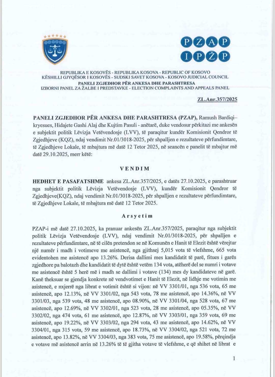 Me anë të ankesës së fundit në PZAP, VV-ja ka sfiduar fitoren në raundin e parë të kandidatit të PDK-së, Mehmet Ballazhit, i cili e mundur për herë të dytë kandidatin e pavarur, Rufki Suma.