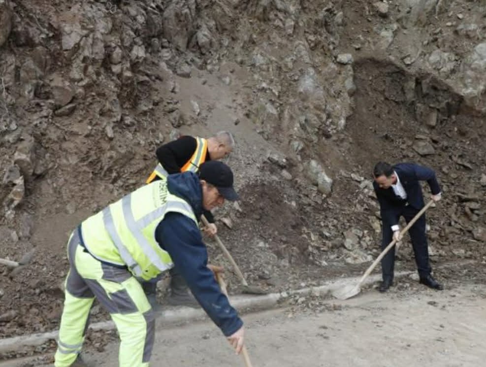 Ai ka dal për të parë pastrimin e rrugës në fshatin Selac, ku ishin shembur disa gur.