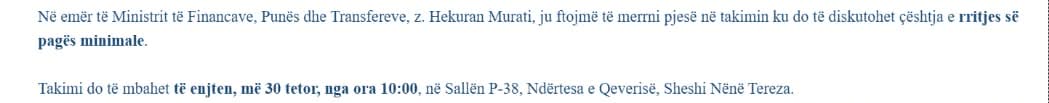 Burime nga organizatat e përfshira theksojnë se ftesa është bërë “privatisht” dhe pa transparencë publike. Kjo ngrit dyshime se qeveria mund të jetë duke përdorur temën e rritjes së pagës minimale, një çështje me ndikim të drejtpërdrejtë në opinion për qëllime parazgjedhore. /Demokracia.com/
