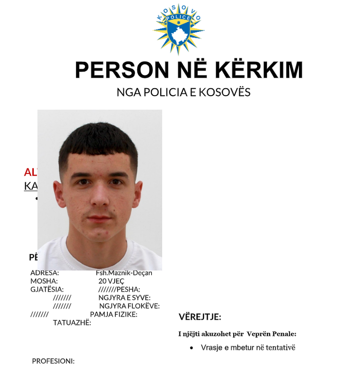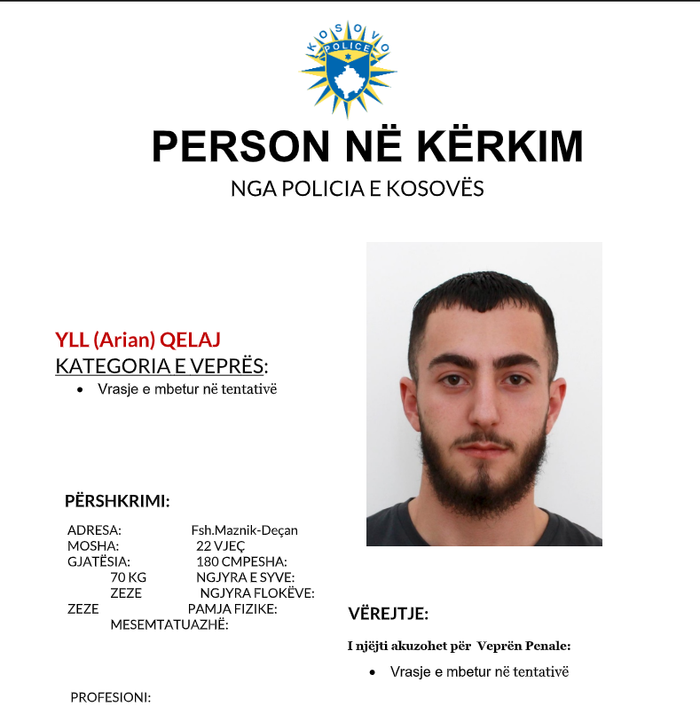 Tutje në njoftim thuhet se tё pandehurit kërkohen për veprën penale: Vrasje e mbetur në tentativë.