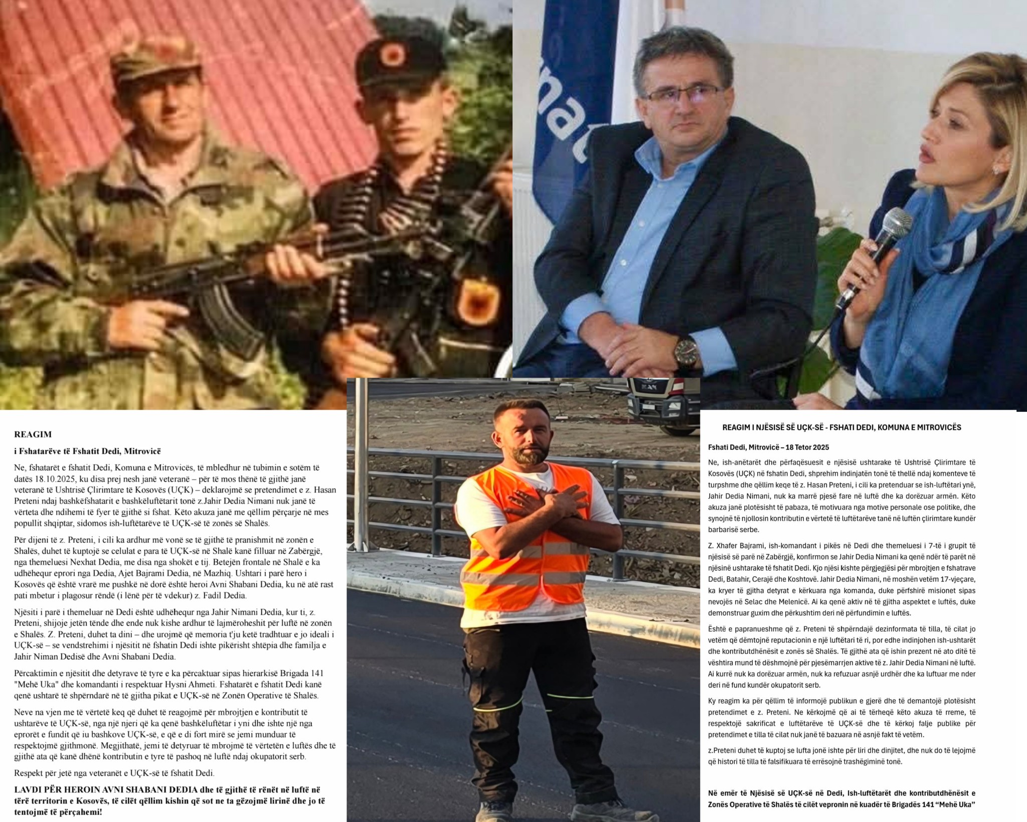 Sipas reagimit, akuzat e Pretenit ndaj bashkëluftëtarit dhe bashkëfshatarit të tyre, Jahir Dedia Nimani, janë plotësisht të pabaza. Ata theksuan se Nimani ka qenë pjesëmarrës aktiv në luftë, i njohur për guxim dhe përkushtim deri në përfundim të saj, dhe kurrë nuk e ka dorëzuar armën.