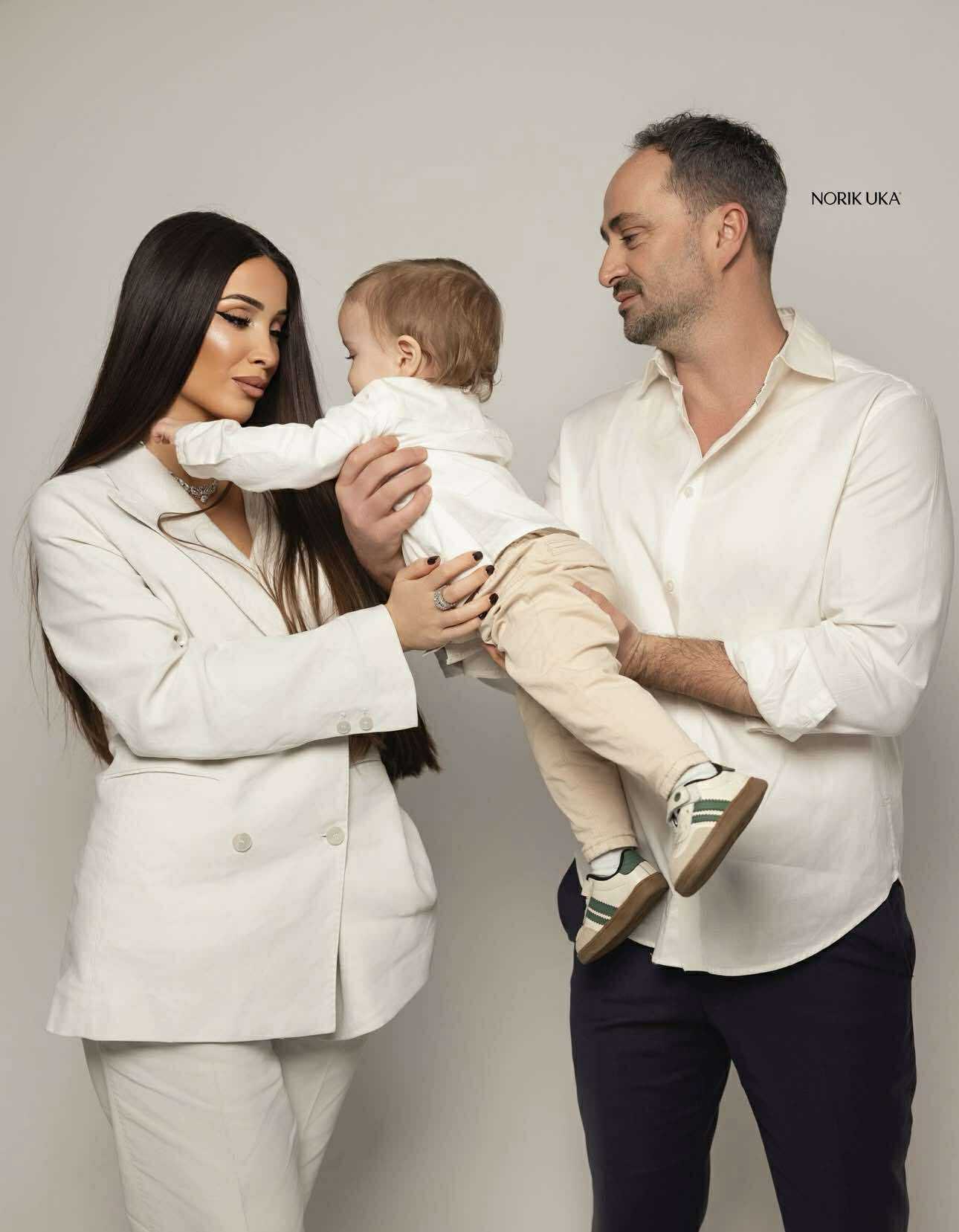 Në fotografinë e publikuar, familja shfaqet e buzëqeshur dhe harmonike, duke reflektuar qetësi dhe lidhje të fortë familjare.