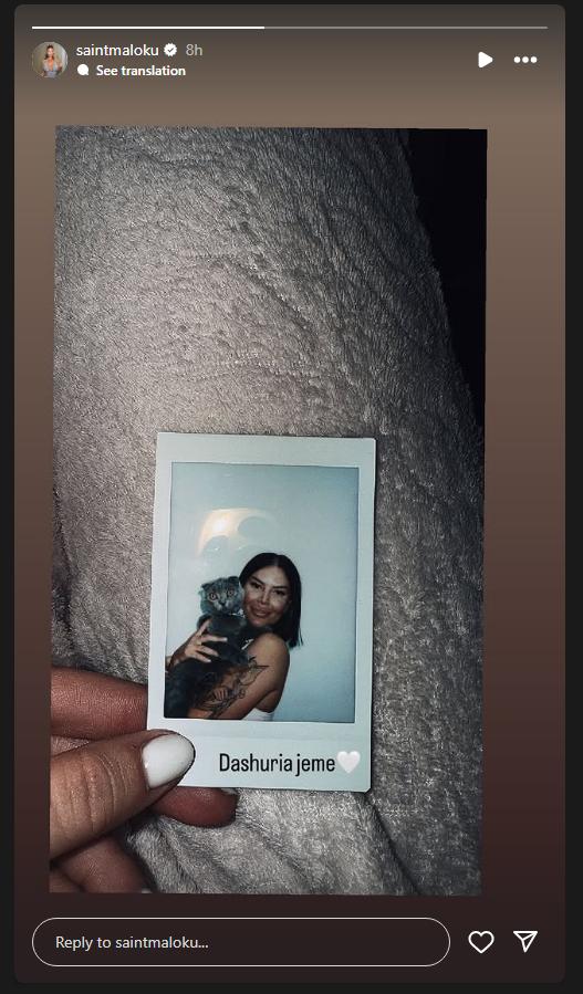 Mbrëmë, në orët e vona ka publikuar një foto me maçokun e saj duke shkruar: “Dashuria jeme”.
