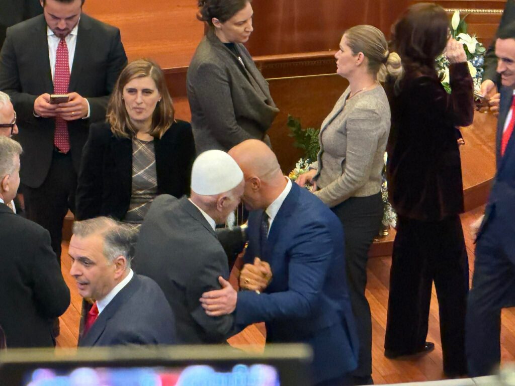 Para fillimit të seancës është parë një përqafim i ngrohtë në mes të bacës Rifat dhe lideri të AAK-së, Ramush Haradinaj.