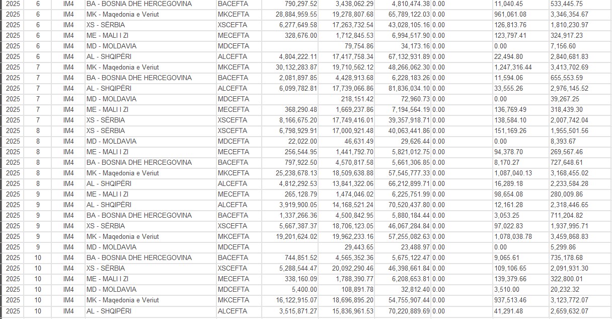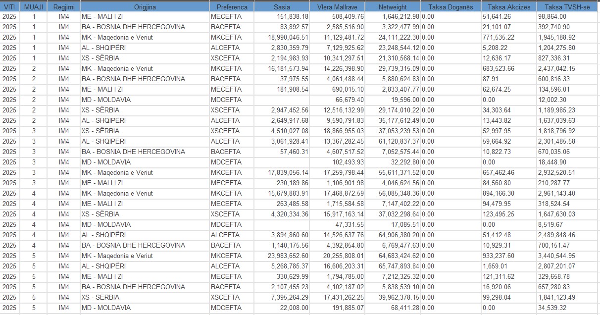 Në vendin e katërt është renditur Bosnja e Hercegovina me 4.56 milionë euro, ndërsa Mali i Zi me 1.78 milionë euro. Moldavia, në anën tjetër, mbetet një furnizues simbolik me vetëm 108 mijë euro mallra.
