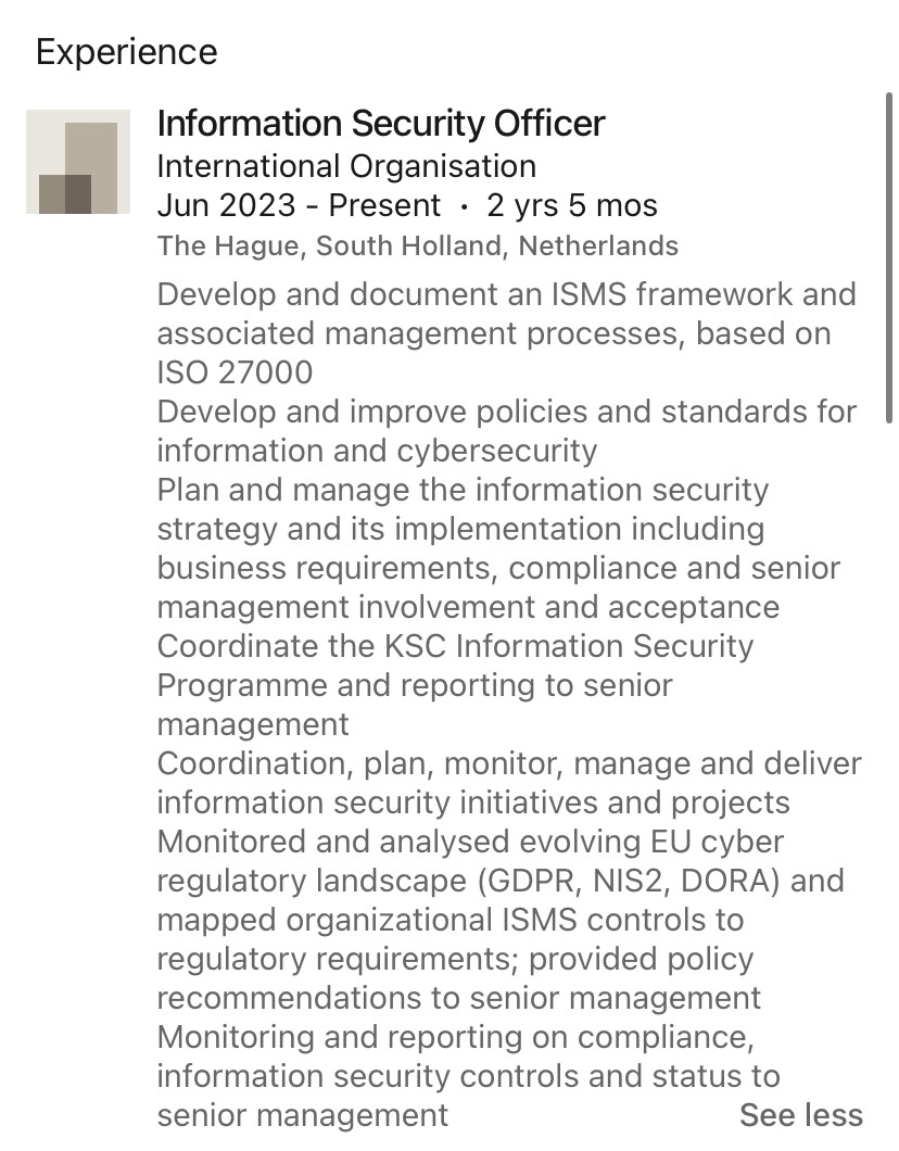 Në platformën “LinkedIn”, ai ka treguar detyrat dhe përgjegjësitë që i kishte në kuadër të Gjykatës Speciale. Në kuadër të detyrës dhe përgjegjësisë së tij, ai i raportoi direkt menaxhmentit të lartë.