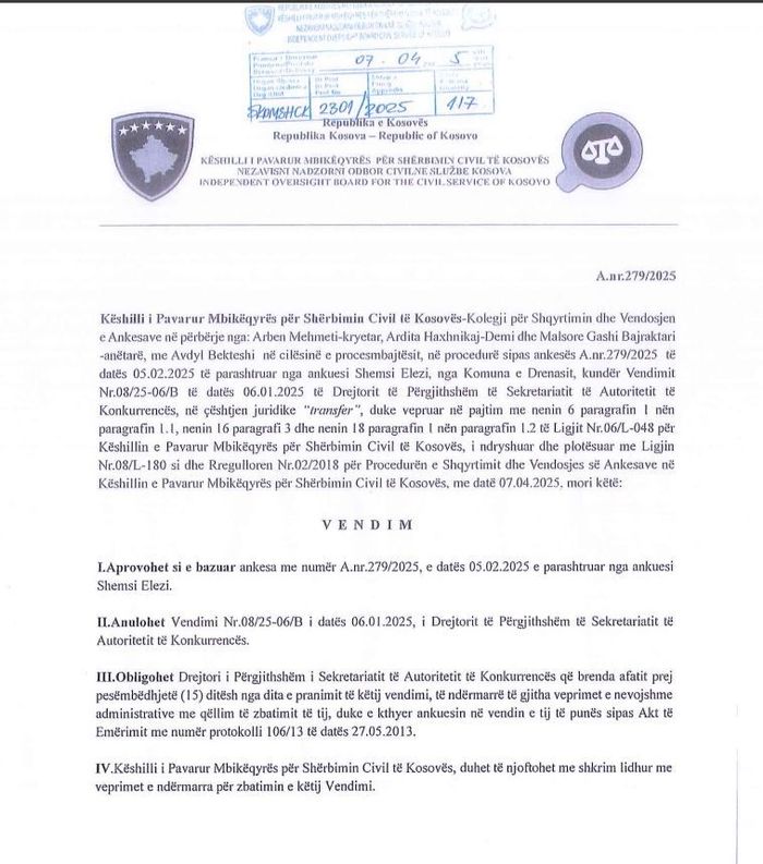 Elezi thekson se ai ka ndjekur të gjitha rrugët ligjore për mbrojtje, duke përfshirë institucionet e pavarura si Këshilli i Pavarur Mbikëqyrës i Kosovës, Agjencia Antikorrupsion, Departamenti i Menaxhimit Zyrtar Publik, si dhe Avokatin e Popullit.