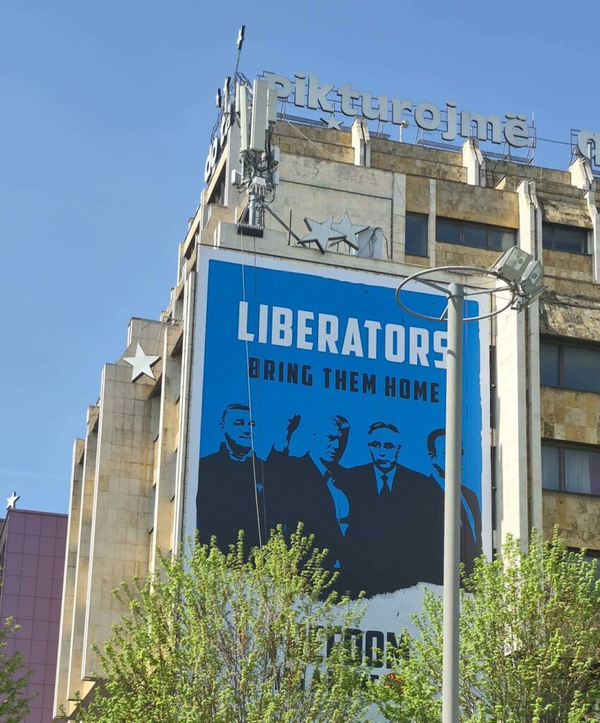 Një baner i madh e mbështetës për krerët e UÇK-së në Hagë është shfaqur ditën e sotme në Prishtinë.