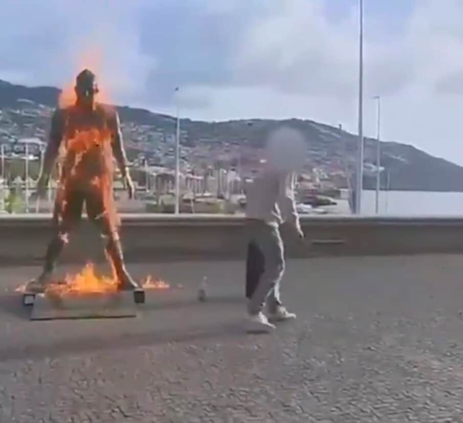 “Ky është paralajmërimi i fundit i Zotit”. Me këto fjalë, një influencer portugez është përpjekur të justifikojë aktin e çmendur ndaj statujës së famshme të Cristiano Ronaldos, e vendosur pranë “Muzeut CR7” në Funchal, Madeira. Burri publikoi në rrjetet sociale një video ku tentonte t’i vinte flakën monumentit kushtuar CR7.