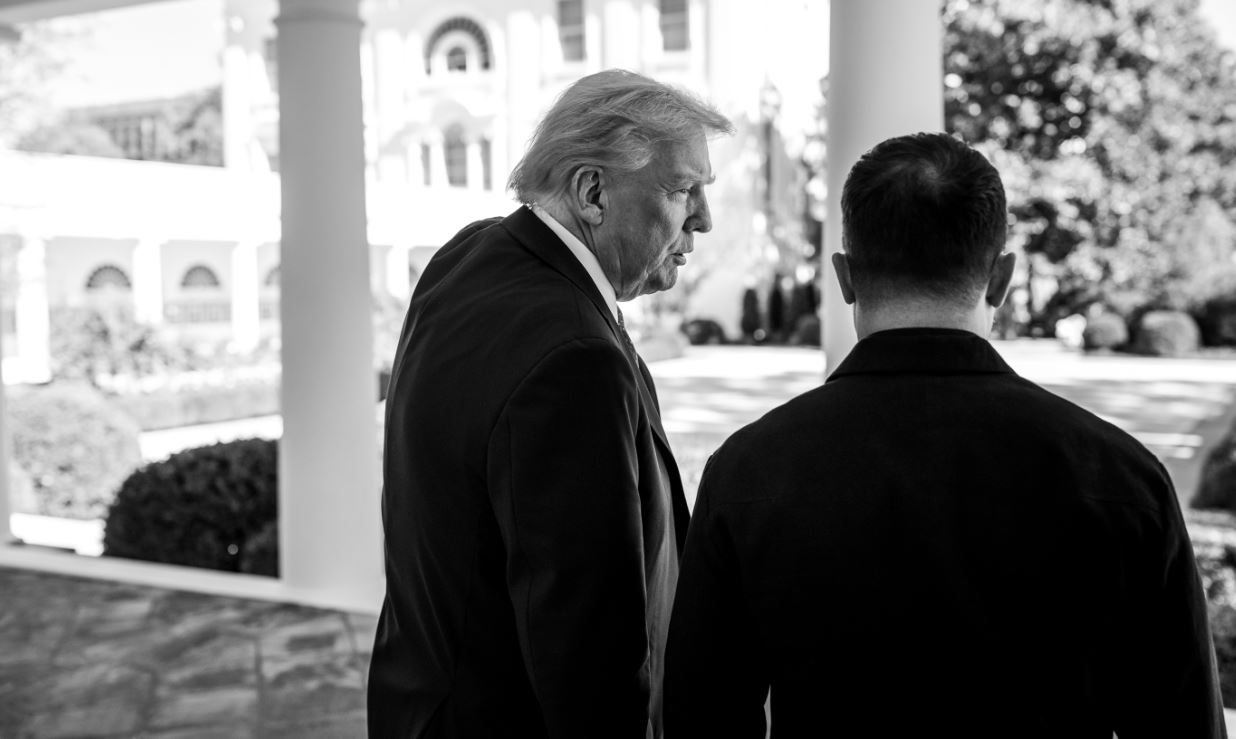 Shtëpia e Bardhë ka ndarë një fotografi bardhë e zi të presidentit amerikan, Donald Trump, së bashku me homologun e tij ukrainas, Volodymyr Zelenskyn.