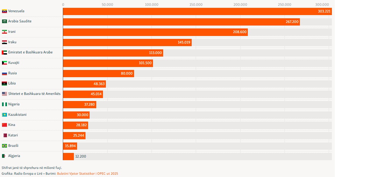 Venezuela ka rezervat më të mëdha të dëshmuara të naftës në botë.