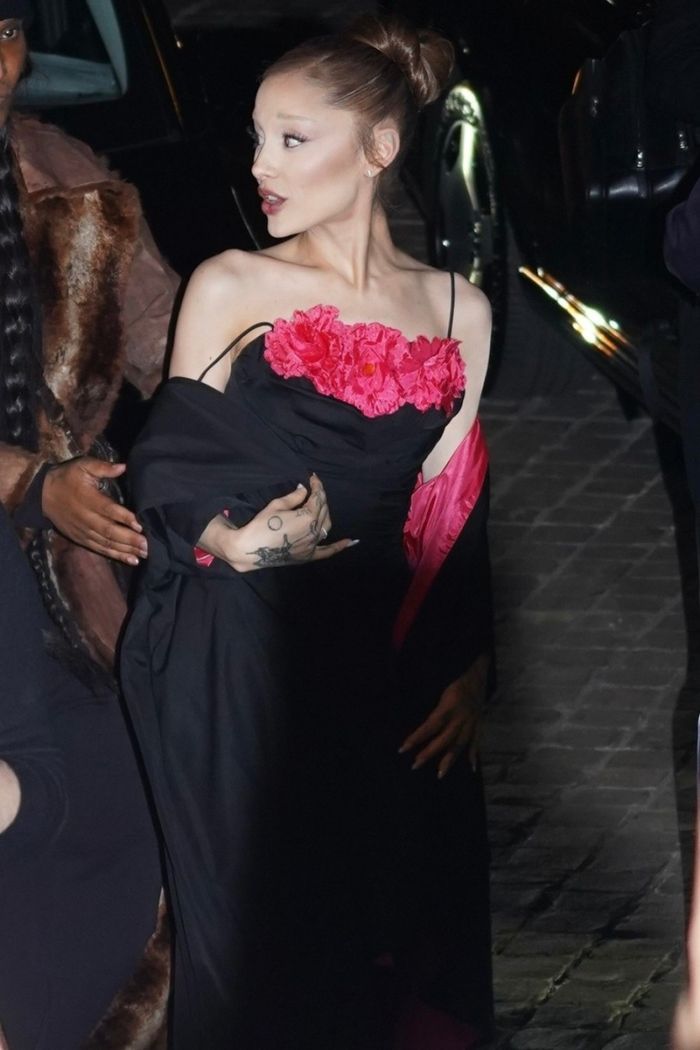 Ylli i muzikës dhe filmit u shfaq në tapetin e kuq në Paris në një fustan të zi vintage, i përzgjedhur nga stilisti i njohur Law Roach. Fustani, nga marka Lili’s Diamond rreth vitit 1950 dhe i furnizuar nga dyqani sekondar nga Beverly Hills, e solli Arianan në një version elegant, me breza të hollë në supa, detaje trëndafili të kuq në gjoks dhe një korset të fshehur që dëshmonte për formë dhe sofistikim.