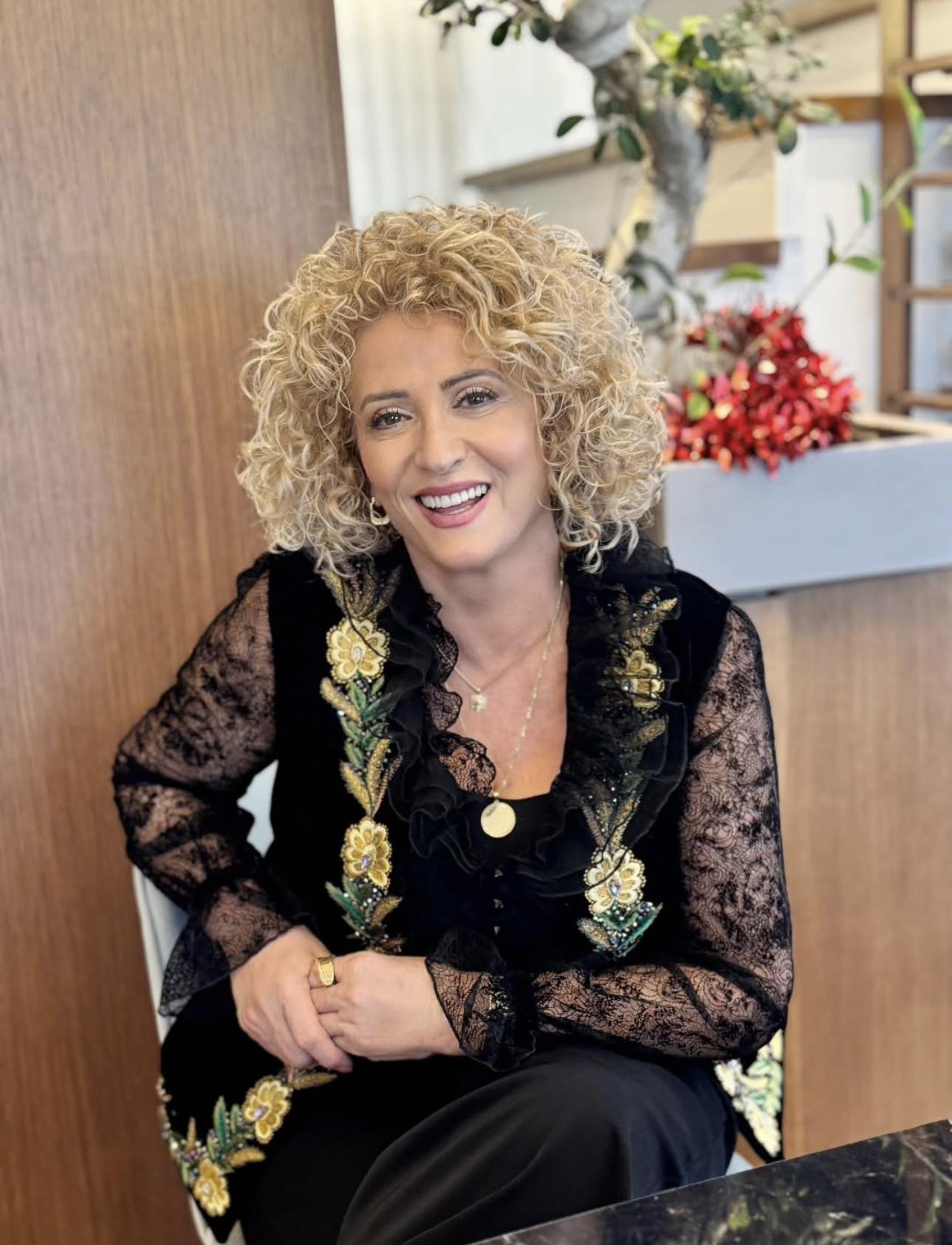 Edhe në këtë paraqitje më të relaksuar, ajo ruan elegancën dhe hijeshinë që e karakterizon.