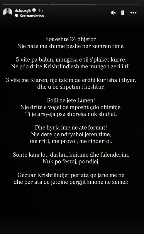 Gëzuar Krishtlindjet për ata që janë me nedhe për ata që jetojnë përgjithmonë në zemër”. /Telegrafi/