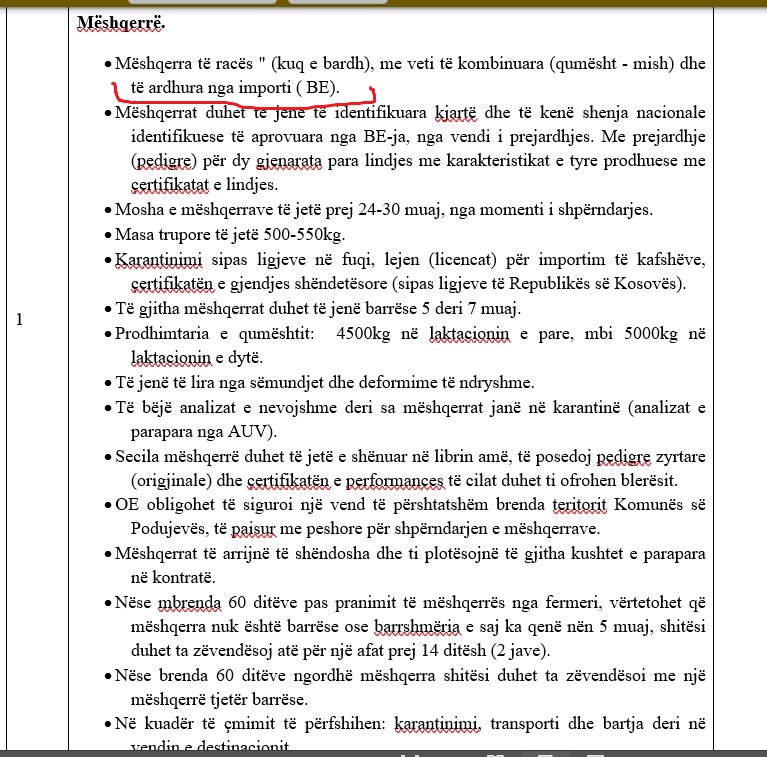 Në fakt, tenderi krijon përshtypjen e një mbështetjeje të importit, jo të zhvillimit të kapaciteteve vendore të blegtorisë.