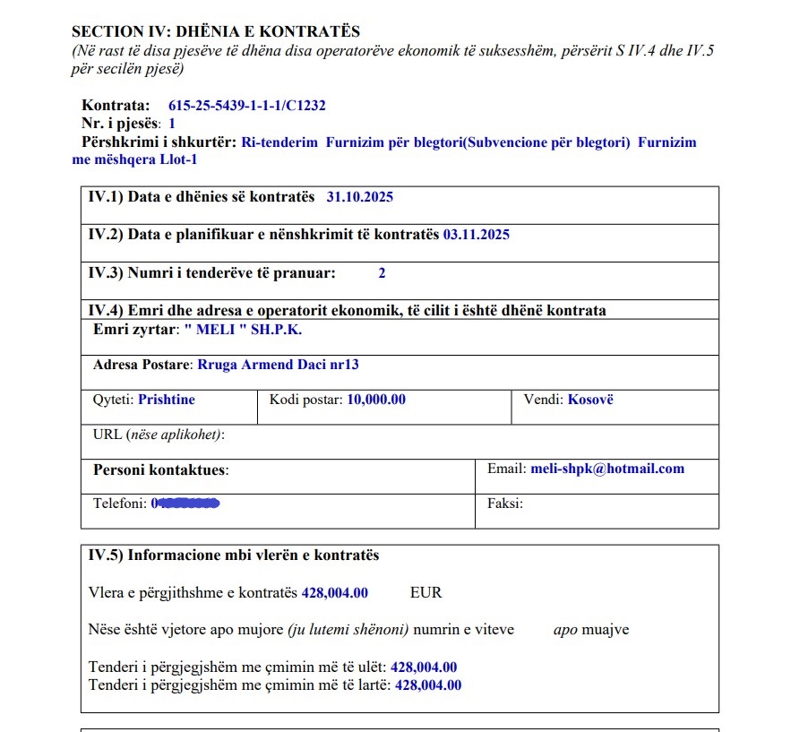 Komuna e Podujevës ka shpallur fituesin e tenderit për furnizimin me mëshqerra të subvencionuara, në vlerë 428 mijë euro, ku çdo mëshqerrë rezulton t’i kushtojë buxhetit publik rreth 2,642 euro. Sipas dokumenteve zyrtare të prokurimit, tenderin e ka fituar kompania “MELI SH.P.K.” nga Prishtina, ndërsa në garë kanë marrë pjesë vetëm dy operatorë, shkruan Demokracia.com.