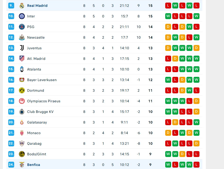 The post Tabloja e plotë e Champions League: 8 ekipet e para, 16 ekipet e play-offit dhe 12 ekipet e skualifikuara appeared first on Telesport.