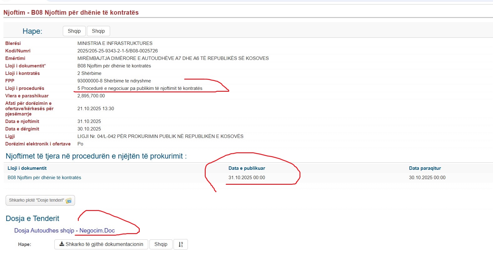 (Neni 35.2.1(iii) – Ligji për Prokurimin Publik)