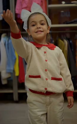 Vogëlushja simpatike po reklamon veshjet e një marke që po pëlqehet shumë nga fëmijët, duke tërhequr vëmendje të madhe në rrjete sociale.