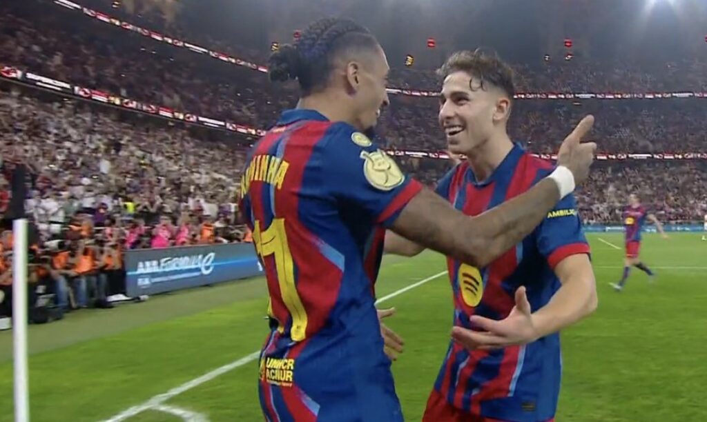 Në Jeddah të Arabisë Saudite po luhet finalja e Superkupës së Spanjës mes Barcelonës dhe Real Madridit. Pjesa e parë është mbyllur 1-0 për katalanasit. “El Clasico” u zhbllokua në minutën e 36-të, nga Raphinha.