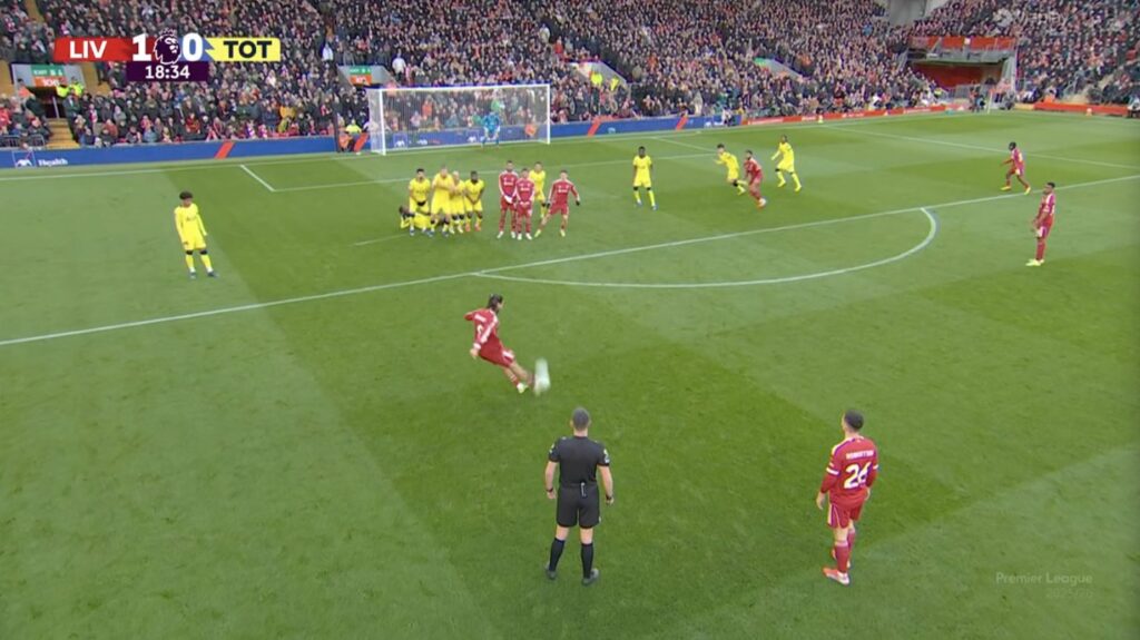 Sfida u zhbllokua në minutën e 19-të ku Dominik Szoboszlai ekzekutoi në mënyrë perfekte një goditje dënimi dhe topi përfundon në rrjetë. Në minutën e 21-të, Liverpool i afrohet golit të dytë, por goditja e Ryan Gravenberch përfundon ngjitur me shtyllën e djathtë. Në minutën e 36-të, sërish një mundësi e artë për Liverpool-in për të gjetur golin e dytë, por goditja e Cody Gapko përplaset në shtyllën e majtë.