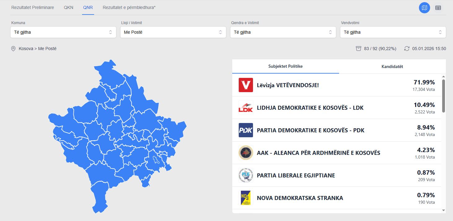LVV që para disa orësh ishte mbi 72%, tash është 71.99 për qind, LDK mbetet e dyta dhe në vend të tretë është PDK-ja.
