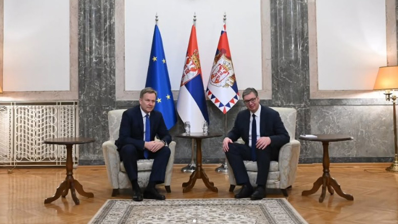 Presidenti i Serbisë, Aleksandar Vuçiq, ka deklaruar sot, në një bisedë me përfaqësuesin special të Bashkimit Evropian për dialogun ndërmjet Kosovës dhe Serbisë, Peter Sorensen, se me hyrjen e Kosovës në një aleancë ushtarake rajonale “po rriten më tej tensionet dhe po rrezikohet siguria e popullit serb”, transmeton Paparaci.