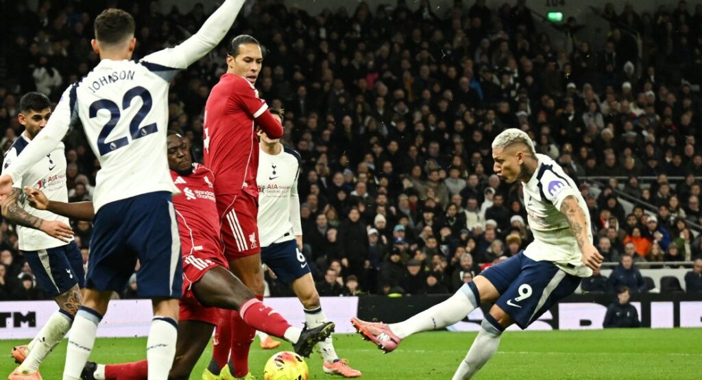 Tottenham luajti pjesën më të madhe të ndeshjes me një lojtar më pak. Xavi Simons u ndëshkua me karton të kuq pas sinjalizimit të VAR, për një ndërhyrje të rrezikshme me takë nga pas ndaj Virgil van Dijk, në minutën e 32-të. Pjesa e parë u mbyll në barazim pa gola.