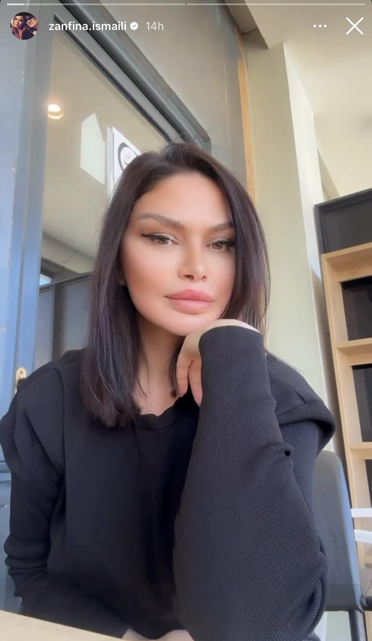 Në imazhin e ndarë, Zanfina shfaqet e qetë dhe në harmoni, duke reflektuar një fazë më të rezervuar të jetës së saj publike.