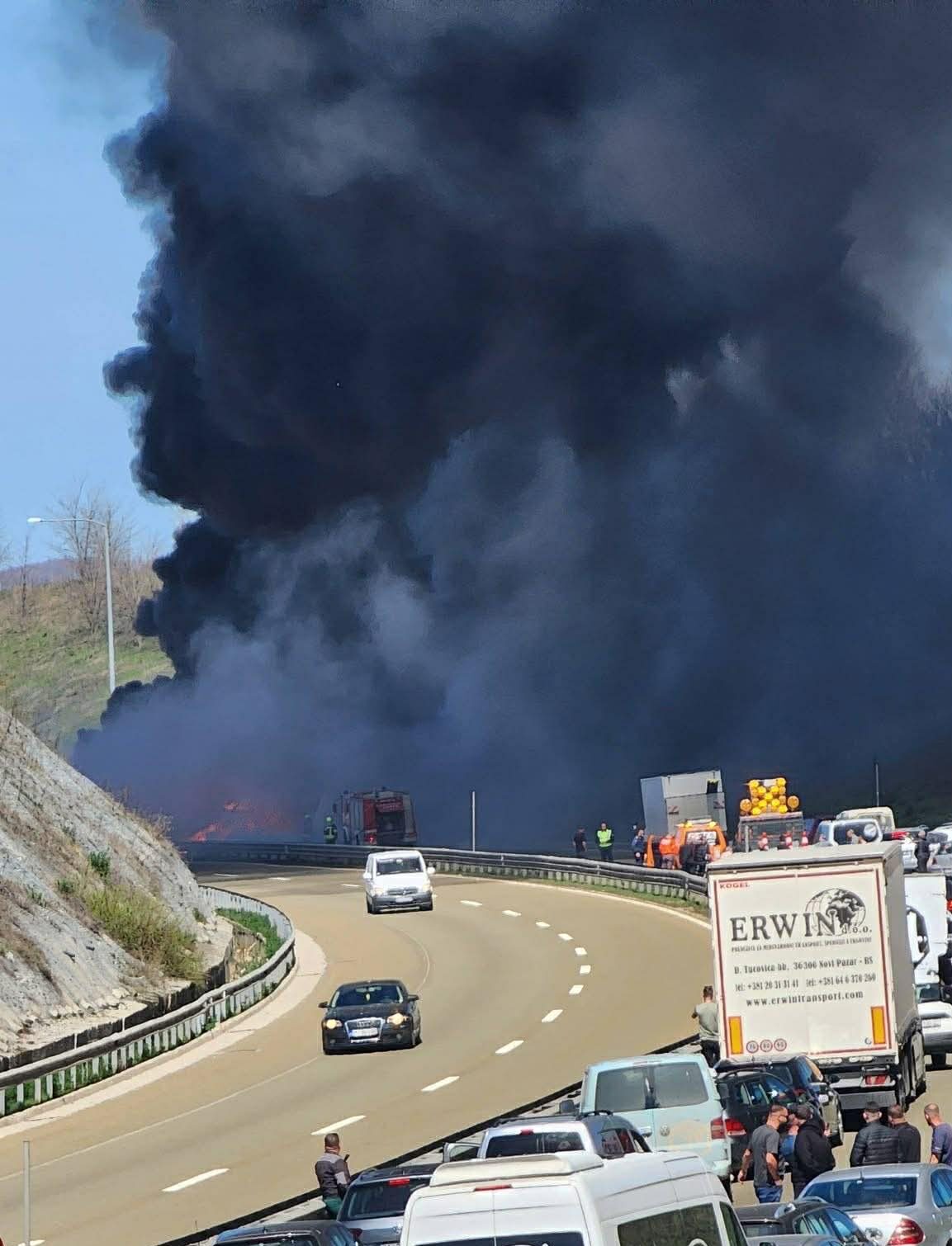 Sipas pamjeve nga vendi i ngjarjes, dyshohet se një kamion është përfshirë tërësisht nga flakët, çka ka bërë që qarkullimi i automjeteve të vështirësohet mjaft shumë.